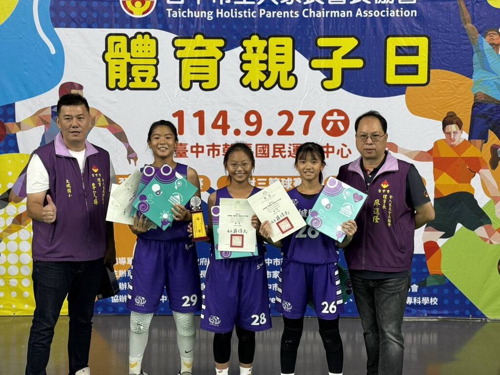 2025-11-18 大里區 塗城國小 學務處 報導點閱數:102 次榮譽事蹟【塗城報導】塗城國小體育班籃球隊近日在兩項三對三籃球賽事中大放異彩,男女籃雙雙勇奪佳績,捷報傳回,全校師生與有榮焉。 女籃隊由洪榆捷、許芸溱、周庭語三位女將組成,她們日前參加「臺中市全人三對三籃球賽」,在賽場上展現了絕佳的默契與拚勁,一路過關斬將,最終成功摘下女子組冠軍金盃。 而在男子組賽事中,由馬維宏、李宇凡、洪銘鈞組成的隊伍,也代表學校參加「運動i臺灣南屯區三對三籃球賽」,面對眾多強敵環伺,小將們仍奮力拚搏,榮獲國小組殿軍(第四名)的優異成績。 此次佳績是教練團與球員們平日辛勤訓練的成果,也展現了學校在體育教育上的扎實根基。