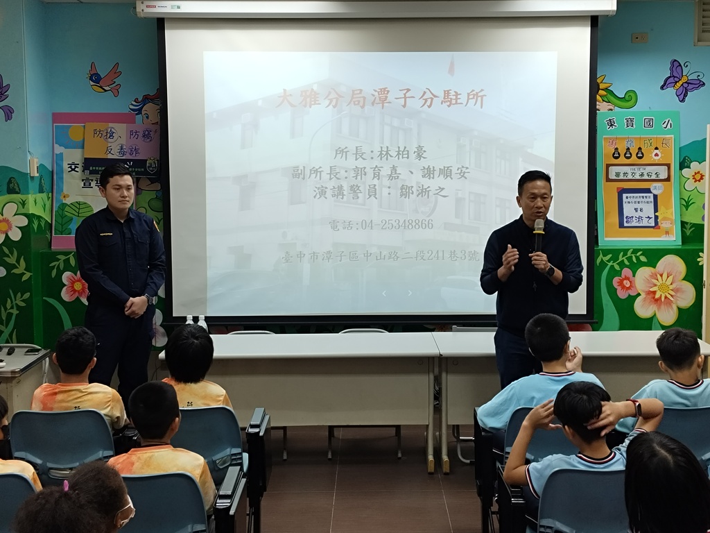 2025-12-19 潭子區 東寶國小 柯湘芸 報導點閱數:136 次校園新聞為提升學生自我保護意識與法治觀念,本校於今日邀請大雅分局潭子分駐所鄒淅之警員蒞校,向五、六年級學生進行一場內容豐富且實用的安全教育宣導講座。宣導主題涵蓋犯罪預防、性別平等教育、交通安全及校園霸凌防治等重要議題,協助學生建立正確觀念,營造安全友善的校園環境。 講座中,鄒警員以生活化的實例與淺顯易懂的說明方式,向學生介紹常見的犯罪態樣,提醒同學提高警覺、學會保護自己,並鼓勵遇到危險或困難時,能即時向師長或警方求助。在性別平等教育部分,鄒警員引導學生認識身體界線與尊重他人的重要性,強調每個人都應受到平等對待,勇敢說「不」,並懂得尋求協助。 在交通安全宣導方面,鄒警員透過實際案例說明遵守交通規則的重要性,提醒同學行走道路時注意車輛動向,養成良好的用路習慣,以確保自身安全。此外,針對校園霸凌議題,也特別說明霸凌的類型與影響,鼓勵學生彼此尊重、友善相處,並在發現或遭遇霸凌時勇於通報,共同維護和諧的學習環境。 活動過程中,同學們專心聆聽、踴躍回應,現場互動熱絡。透過此次宣導講座,不僅加深學生對安全與法治議題的認識,也強化其自我保護與尊重他人的能力。非常感謝大雅分局潭子分駐所及鄒淅之警員的用心分享,期盼未來持續透過多元宣導活動,守護學生的安全與健康成長。