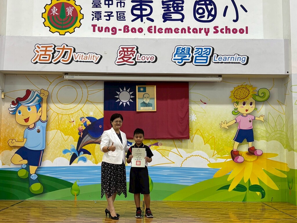 2025-11-05 潭子區 東寶國小 鍾凱婷 報導點閱數:139 次榮譽事蹟「114年全國語文競賽臺中市初賽」結果出爐,本校兩位優秀學生——王語彤與陳麒妃,在眾多競爭者中脫穎而出,展現了卓越的語文實力,為校爭光! 📜 聲聲入耳,唸出臺語的生命力 王語彤同學以流暢優美的臺語聲韻,榮獲國小學生組 第八區 臺語朗讀 第三名! 臺語朗讀,比的不僅是標準的發音,更考驗選手對語境的理解與情感的表達。語彤以流暢自然的聲調,將臺語的抑揚頓挫、在地情感演繹得淋漓盡致,彷彿將聽眾帶入故事的場景之中,更將文字化為有生命力的聲音,傳達出她對這份對語言的熱愛與堅持。 ✨ 妙筆生花,寫下屬於自己的世界 陳麒妃同學以出色的文字駕馭能力,榮獲國小學生組 第八區 作文 第三名! 作文,是思想的沉澱與表達。麒妃的文字充滿靈氣與創意,她能夠敏銳地觀察生活,並將細膩的情感與獨特的見解融入筆端。她的作品結構嚴謹、文筆優美,展現了超齡的思維深度與文字魅力。她的得獎,證明了透過不斷閱讀與書寫訓練,孩子們也能建構出一個豐富且引人入勝的文字世界。 🥳 讓我們一起為她們喝采! 全校師生都為王語彤和陳麒妃同學感到無比驕傲!她們的故事提醒我們:只要肯努力,每位孩子都能在自己熱愛的領域中發光發熱。 請大家用最熱烈的掌聲與祝福,為這兩位傑出的語文小將加油打氣!期待她們未來繼續精進,成為語文世界中最閃耀的星星!