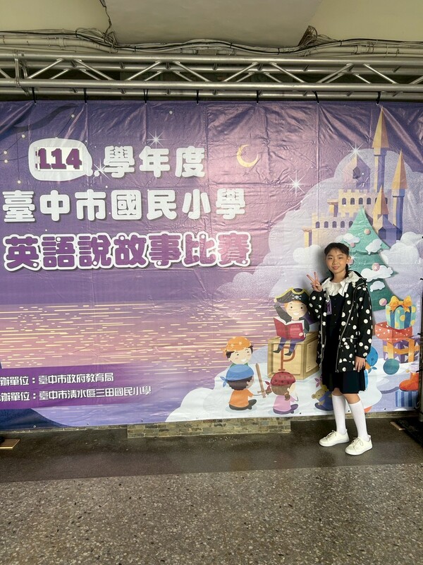 2025-12-08 南區 國光國小 教務處 吳柏慧 報導點閱數:112 次校園新聞臺中市 114 學年度英語說故事比賽於 12 月 4 日(星期四)上午在清水區三田國小盛大舉行。國光國小由六年五班陳韻琬同學代表參賽,並由侯慧姍老師指導。 為了這次比賽,陳韻琬在平日午休時間積極練習,由侯慧姍老師耐心指導,家長也投入道具準備與在家陪同練習,形成最堅強的後盾。張家馨校長對學生參與比賽給予最大的支持與鼓勵,學校也利用20分鐘大下課,在校長室及川堂前的小廣場,讓更多學生一起欣賞英語說故事及讓陳韻琬同學能充分練習。韻琬表示,比賽當天雖然天氣寒冷、風勢強勁,但她仍努力在舞台上呈現出平日練習的最佳狀態,對自己的表現感到滿意。 透過此次競賽,不僅讓韻琬累積了寶貴的舞台經驗,也能從其他學校優秀選手的精彩表現中學習,開拓視野、收穫豐富。這次參賽不只是一次表演,更是成長的旅程,展現了本校學生在英語學習上的努力與自信。