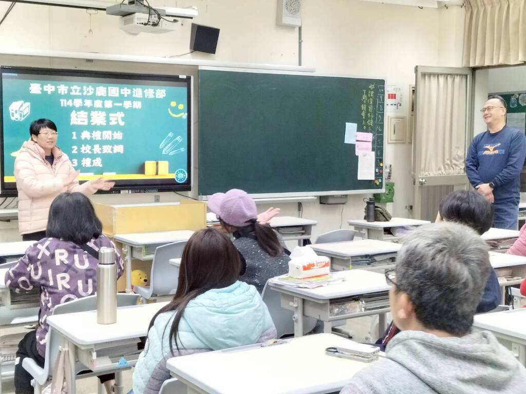 2026-01-27 沙鹿區 沙鹿國中 進修部 報導點閱數:76 次校園新聞每當夜色籠罩,沙中校園總有一隅燈火通明。這裡聚集了懷抱夢想的本國住民與遠嫁而來的新住民同學,每天傍晚六點,校園裡便響起親切的問候聲與翻書聲。 這群學生克服白天的勞累,選擇在夜間重拾課本、相互扶持,形成校園內最動人的風景。期末休業式上,校長於休業式中感性致詞,高度肯定同學們在忙碌生活中仍能堅持到課、追求自我成長。隨著學期結束,校園裡洋溢著祝福的氣息,師生們共同揮別舊歲,滿懷期待地相約馬年重逢,持續點亮沙鹿的夜間學習之光。