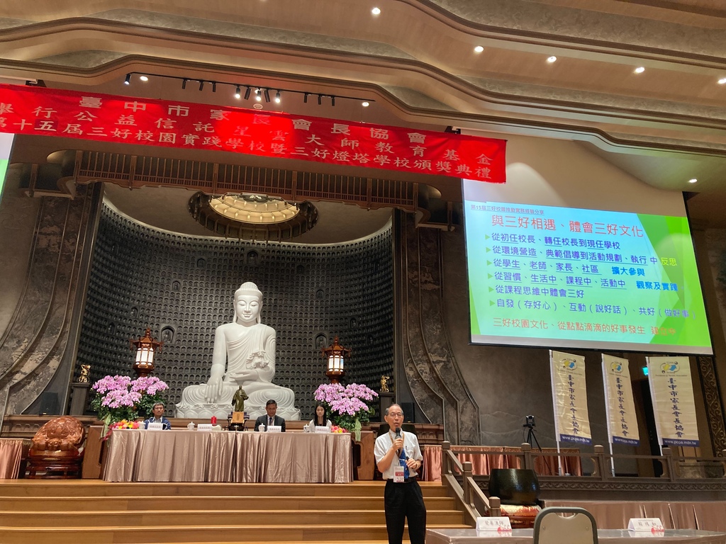 臺中市政府教育局近年來從學校課程及創新教學著手,並與民間團體結合推動品德教育有成,「公益信託星雲大師教育基金」主辦的第15屆「三好校園實踐學校暨三好燈塔學校」選拔活動,臺中市立啟聰學校等高中以下學校共計66校獲獎,大放異彩,蟬連全國第一的優異成績。 教育局長蔣偉民表示,市長盧秀燕重視教育發展,挹注最多的教育經費推動學校軟硬體建設之外,也非常重視學生的品德教育,由教育局透過學校課程及創新教學方式,加上與民間團體結合鼓勵學校推動品德教育,使今年度「三好校園實踐學校暨三好燈塔學校」的選拔再獲全國第一,讓三好「做好事、說好話、存好心」的品德教育內化為學生的品德力。 蔣局長說,教育局推動品德教育的做 ...