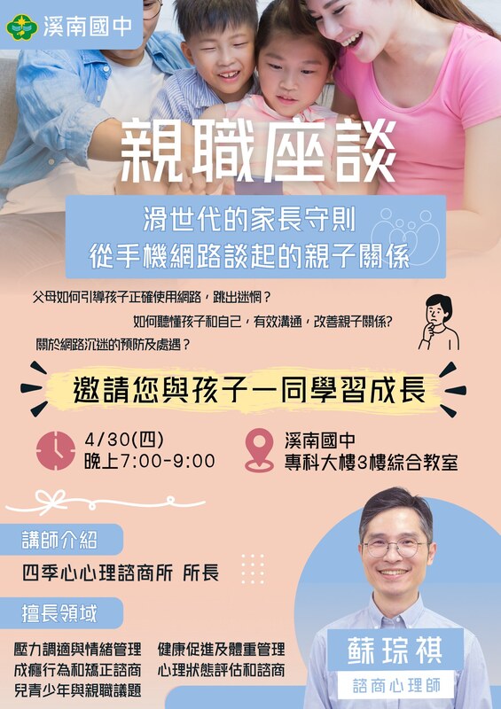 日前,育英國小舉辦了「青少年心理健康校園巡迴宣導講座」,主題為「青春酸甘甜-情緒感受【情緒/壓力紓解】」。我們十分榮幸邀請到「張老師中心」的史捷講師蒞校,為孩子們帶來一場心靈的饗宴。 史捷講師以生動親切、貼近學童生活經驗的語言,帶領大家深入淺出地「認識與表達情緒」。講師溫柔地提醒孩子們:「有情緒是非常正常的」,並教導大家如何透過觀察自己的「身體反應」來覺察當下的情緒狀態。 孩子們跟著講師的引導,學習當面對負面或激動情緒時,可以運用深呼吸、身體伸展等方式放鬆;或是透過遠離情境、轉移注意力,甚至將心事「寫下來、說出來」進行安全宣洩。講師也特別嚴肅且懇切地叮嚀,絕對不能以傷害物品、傷害自己或他人 ...