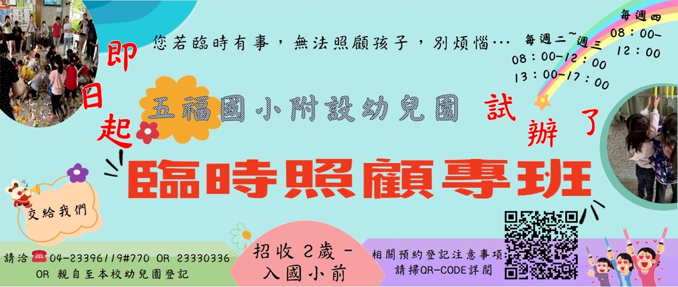 臺中市霧峰區五福國民小學附設幼兒園114學年度臨時照顧服務資訊