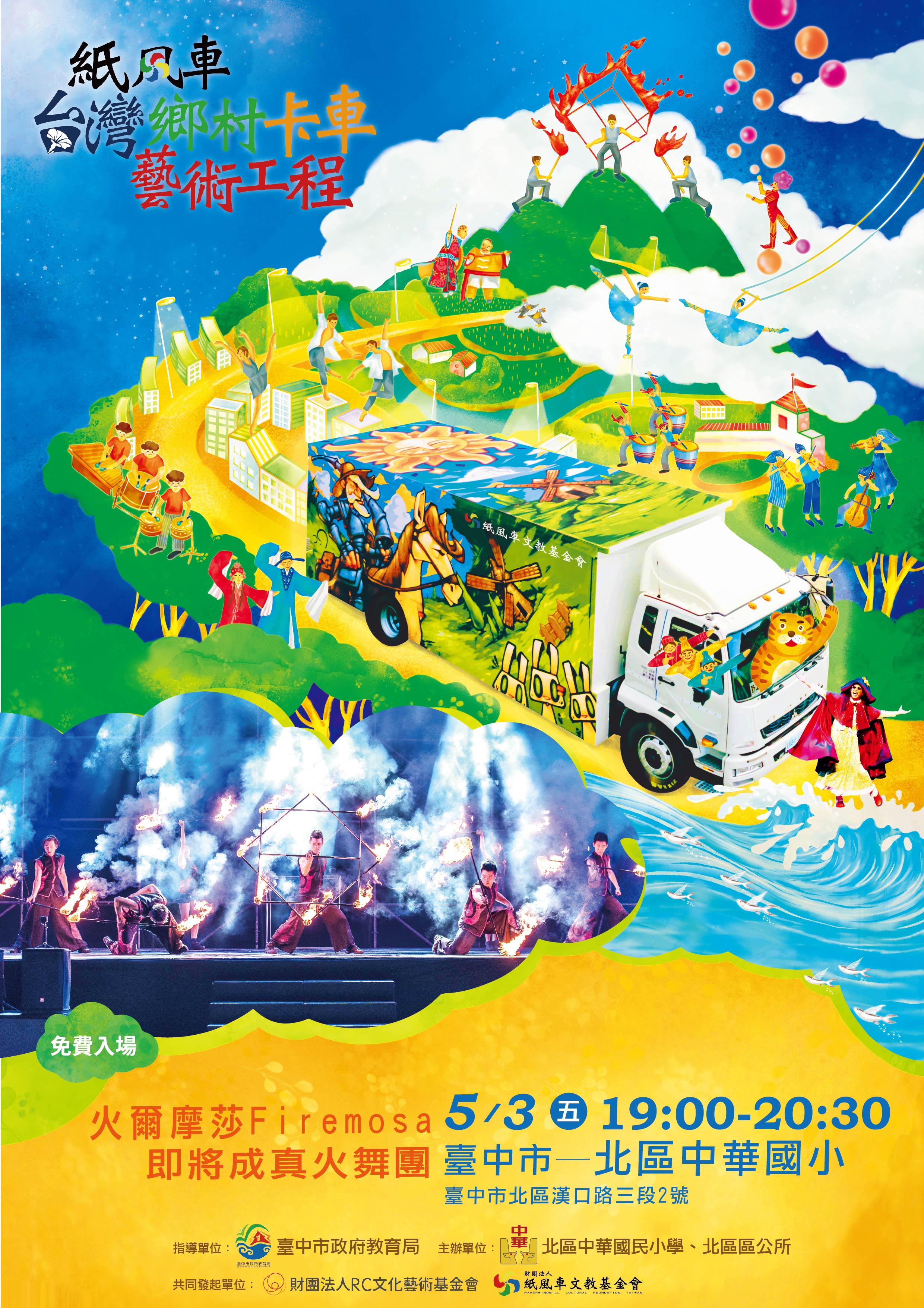 一、依據本市北區中華國民小學113年4月12日華小教字第1130001897號函辦理。 二、旨揭活動訂於113年5月3日(星期五)晚上7時於臺中市北區中華國民小學辦理,免費自由入場,歡迎各界人士前往觀賞。 三、檢附演出活動海報1份。 四、本案如有疑義,請逕洽承辦人葉俐均(電話:04-22979601)。