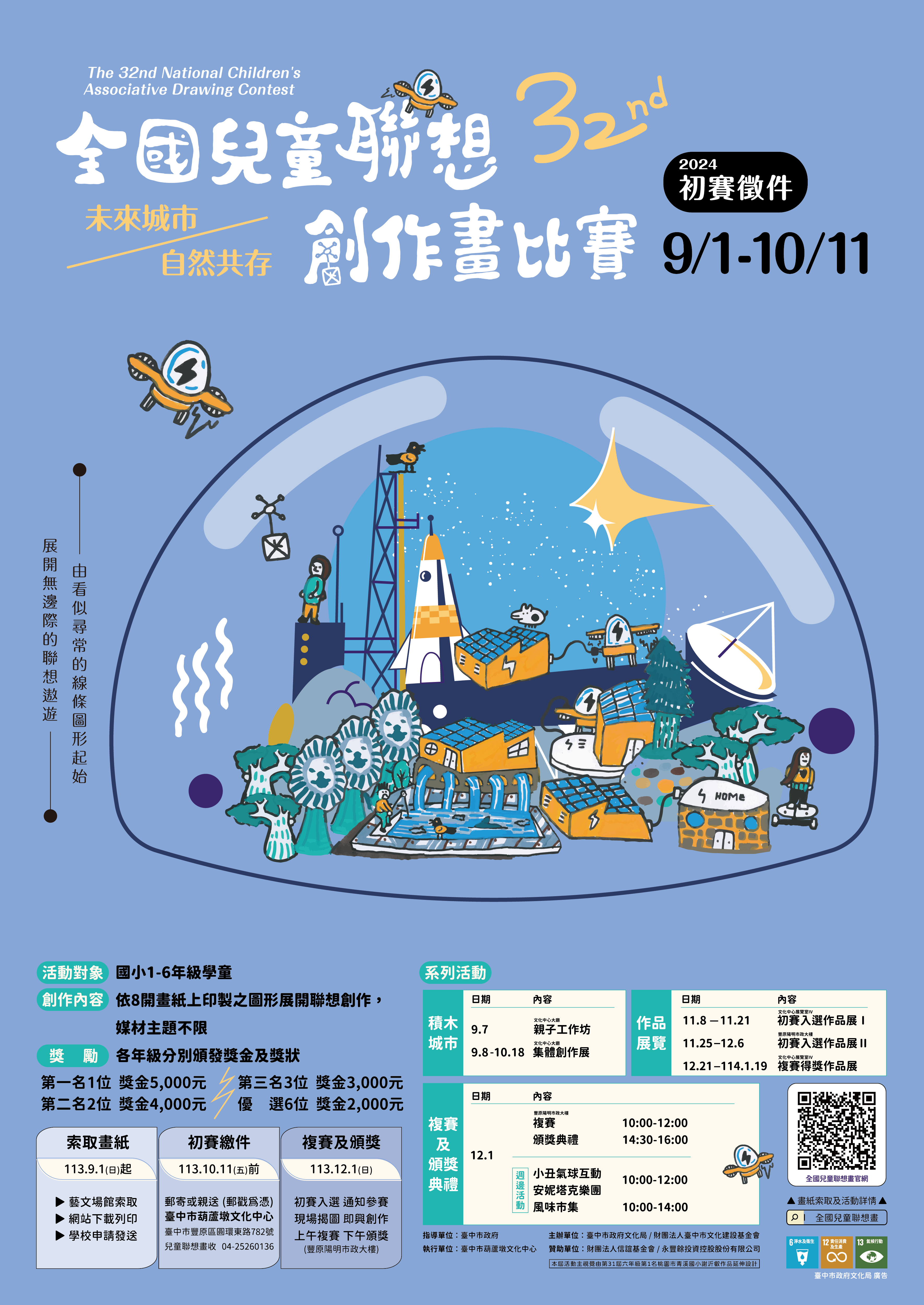 轉知臺中市政府文化局辦理「第32屆全國兒童聯想創作畫比賽」活動初賽徵件資訊。