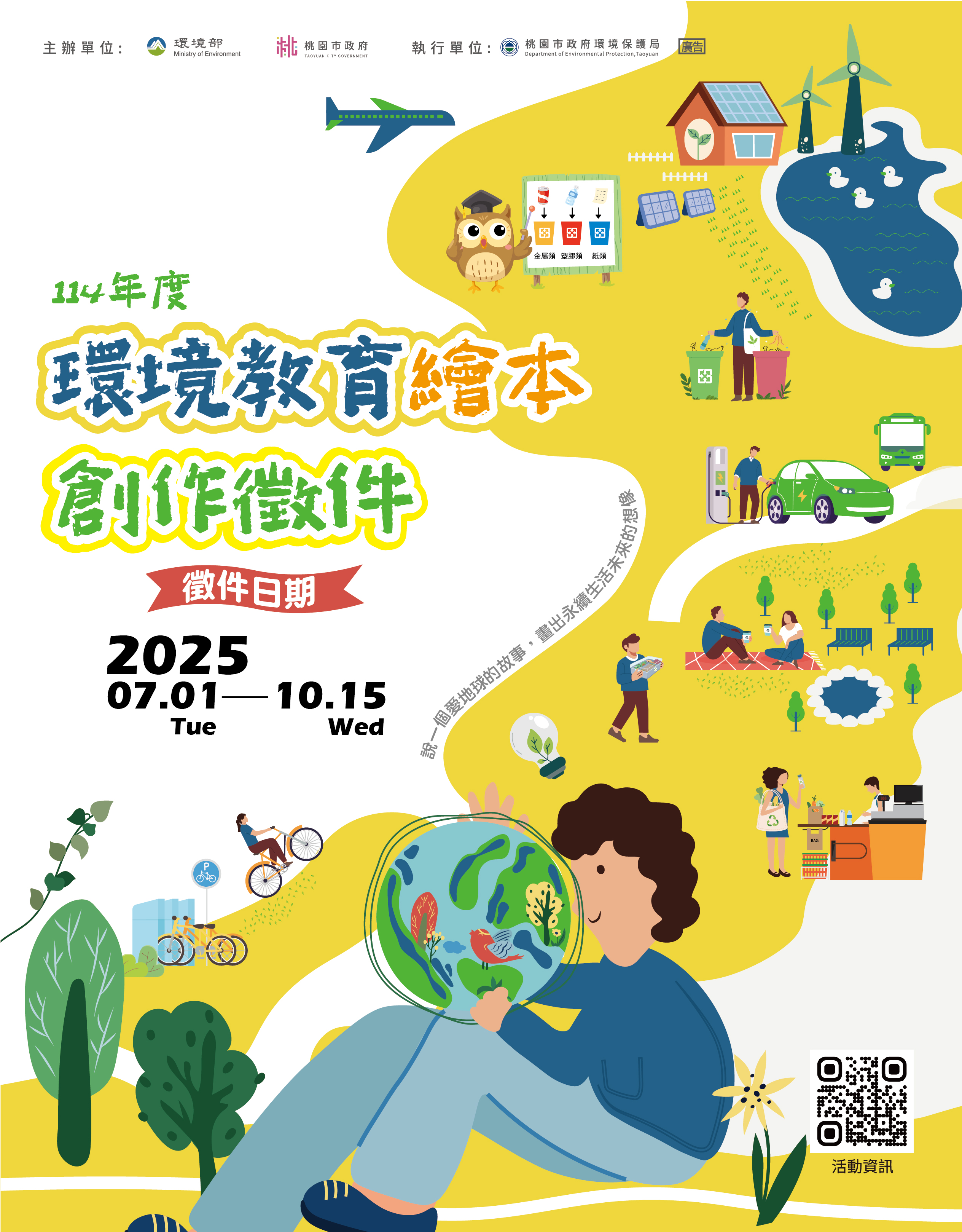 檢送環境部與桃園市政府教育局合辦「114年度環境教育繪本創作活動」簡章及海報1份,請貴校踴躍報名參加,請查照。