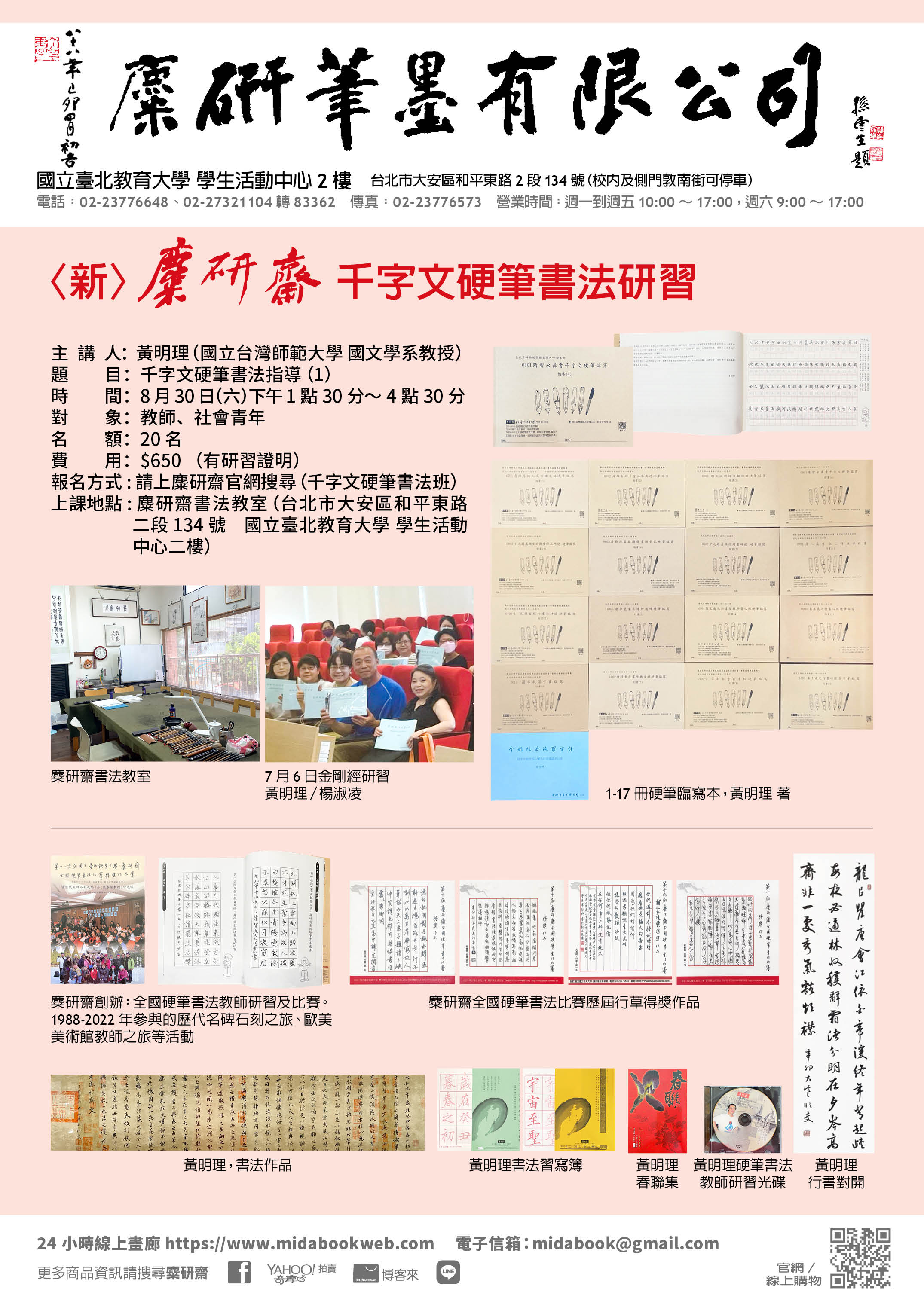 (六)報名方式:請上麋研齋官網搜尋(千字文硬筆書法研習)。