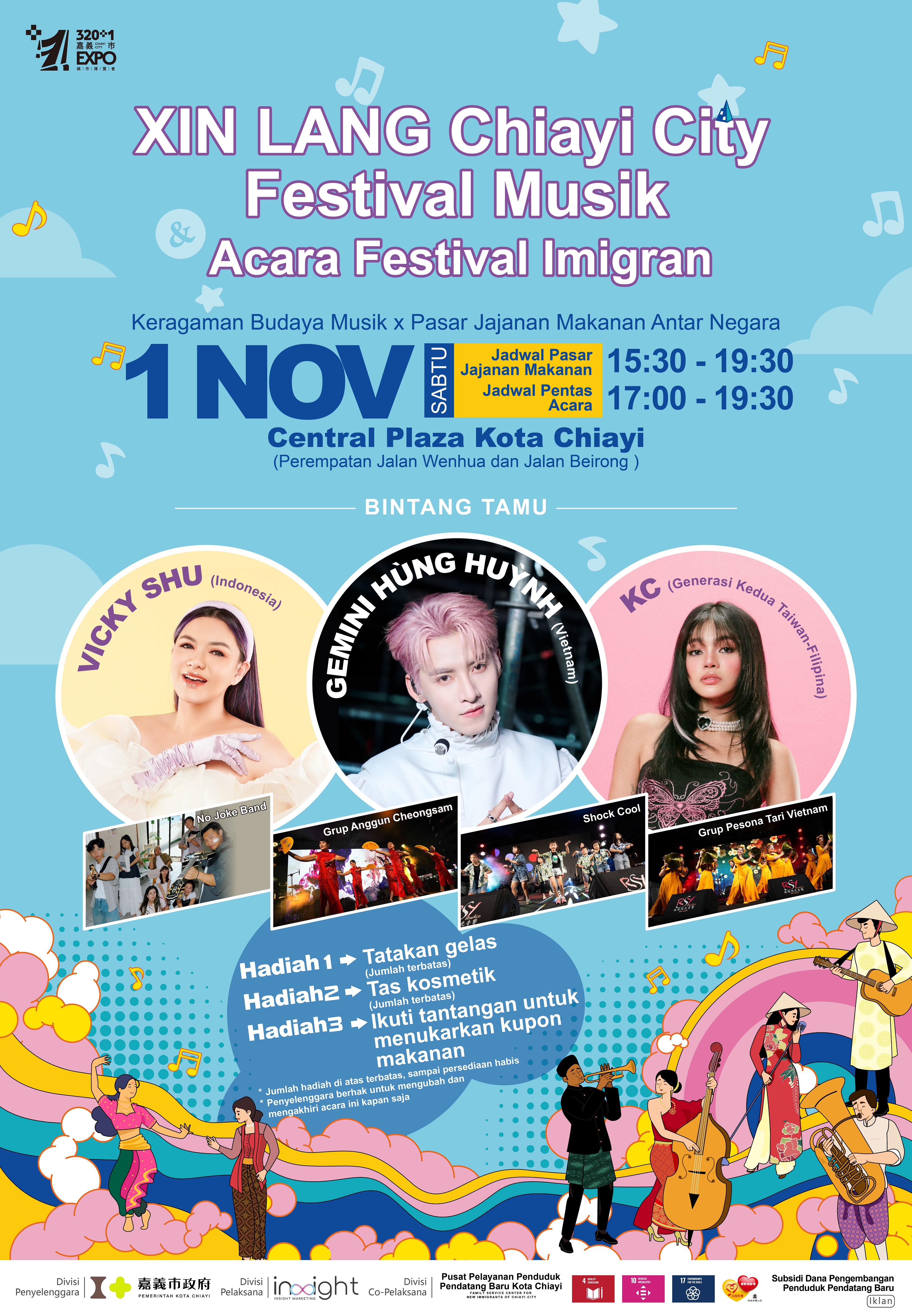轉知嘉義市政府辦理114年度「嘉城新浪音樂節暨移民節活動」,請查照。