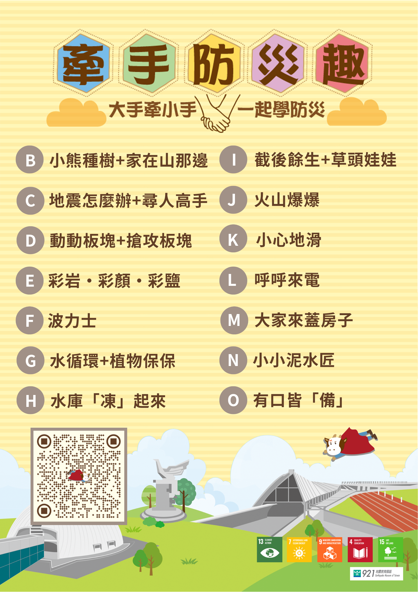 二、園區致力於推廣地震科學、建築安全及防災教育,特別規劃旨揭活動,透過套裝課程,帶領大家從多元主題來認識地震與防災。