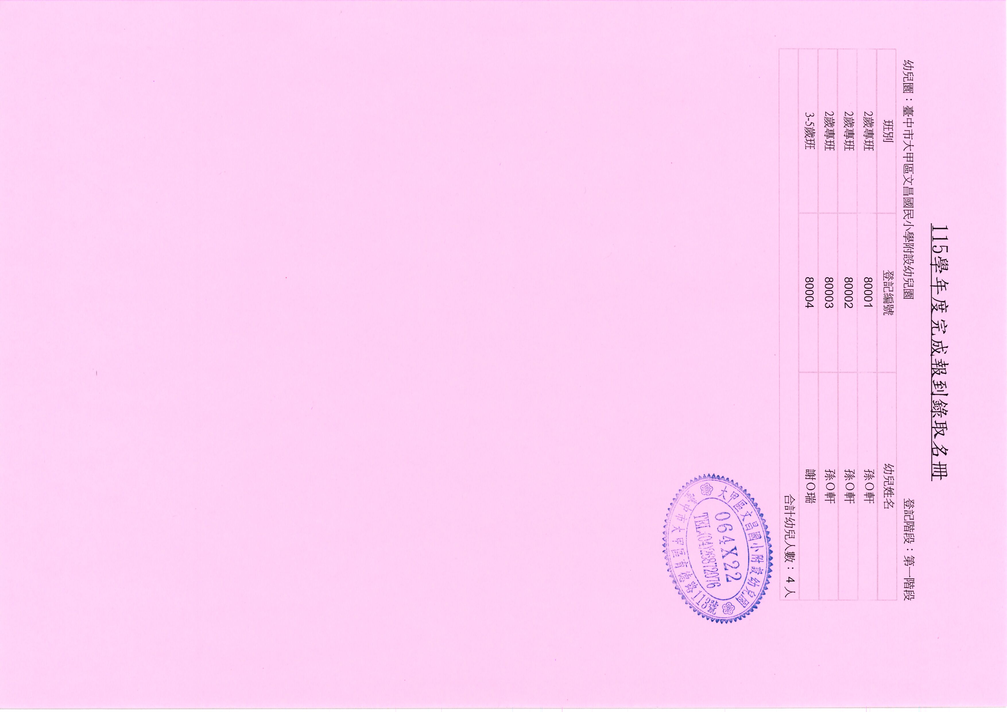 臺中市大甲區文昌國民小學附設幼兒園115學年度第一階段招生正備取及報到結果