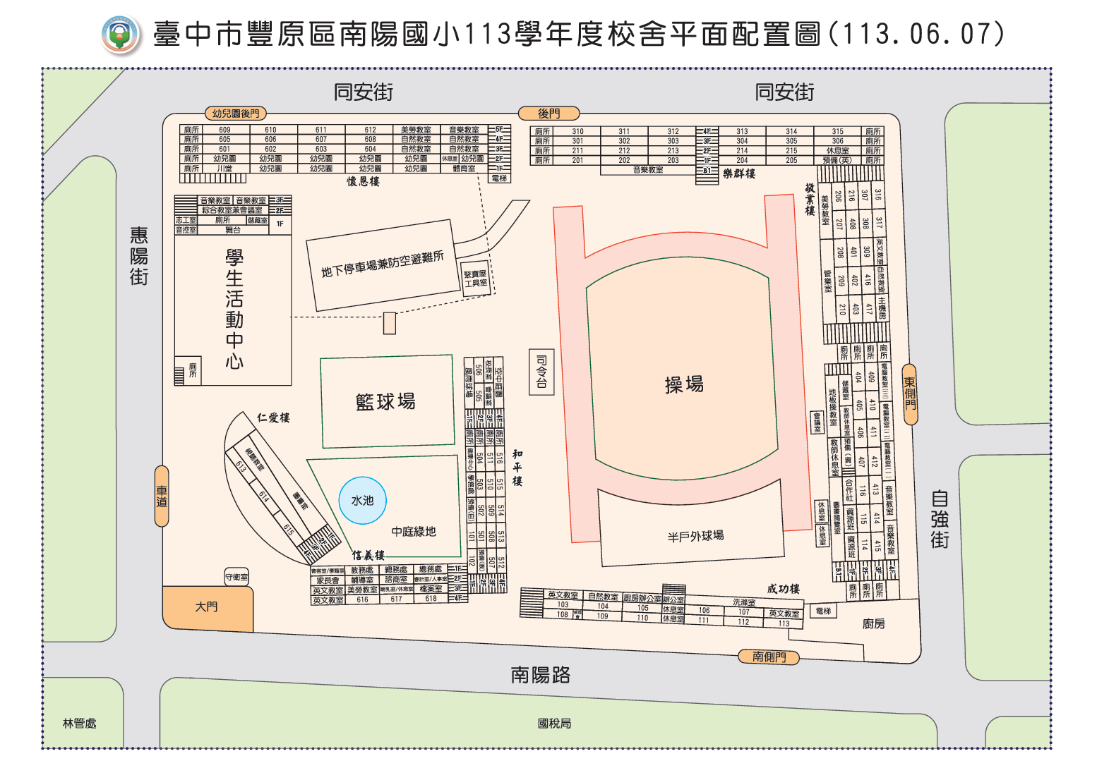 民國99.12.25:臺中縣市合併為直轄市臺中市,更改校名為臺中市南陽國民小學。