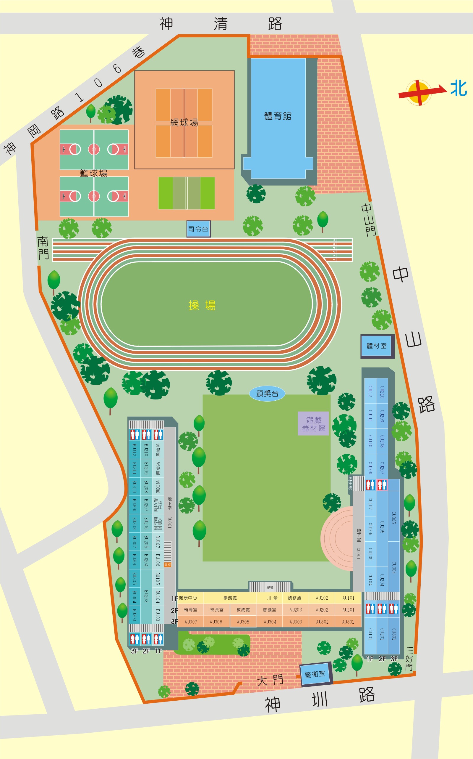 | 活動中心/禮堂建置日 | 1975-12 | 風雨操場 | 1 座 |