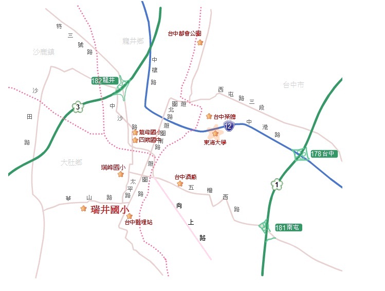 | 瑞井國民小學 | 2001-08-01 | (04)26912550 | (04)26912553 | 064761 | 432308 | Ruei Jing Primary School | 臺中市大肚區瑞井里華山路680號 | https://rjps.tc.edu.tw | 13983784 |