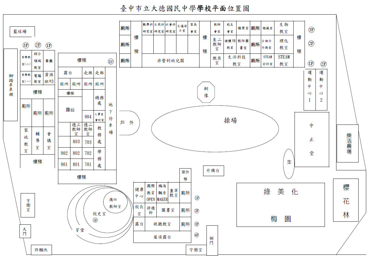 大德梅園為本校最具特色的景觀,每到梅花開放的季節,景象美不勝收,一簇一簇在枝頭盛開的梅花,隨著清風搖曳,別具姿態,加上陣陣撲鼻的暗香,更是令人駐足此間、流連忘返。為提昇學生藝術人文素養,增進學習樂趣,本校每年都會舉辦一連串學習活動,有「賞梅─飄雪了」、「梅詩欣賞」、「梅花攝影比賽」、「醃製有機梅」、「音樂梅花茶會」等,並結合各領域,編寫「梅花季」特色課程學習單。帶領學生從認識梅花啟動美學及生態環境教育。