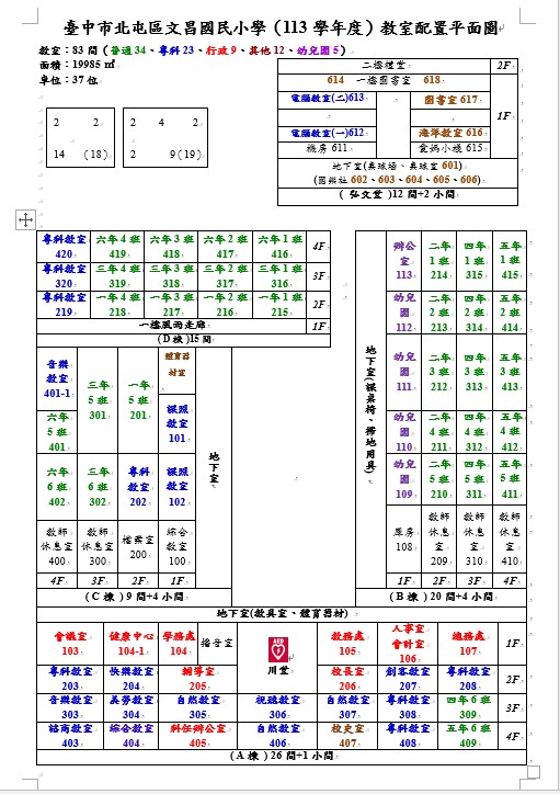 | 建坪面積 | 19056.25 平方公尺 | 普通教室數 | 32 間 |