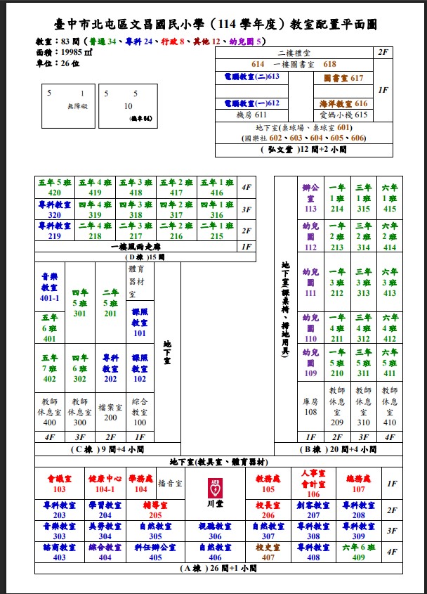 | 專科教室數 | 24 間 | 午餐廚房 | 0 間 |