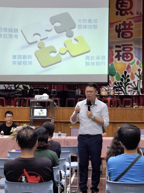 隨後,家長齊聚禮堂參與全校性的親師交流。欣賞藝才班的精彩演出之後,校長首先致詞,感謝家長們百忙之中蒞臨,並強調學校在本學期的教育願景與重點工作。會長亦代表家長會分享對學校的支持與期許,表達與學校攜手合作、共同打造優質教育環境的決心。接著由四處室主任分別進行報告,涵蓋教務、學務、總務及輔導等面向,讓家長清楚了解校務推展的方向與近期計畫。