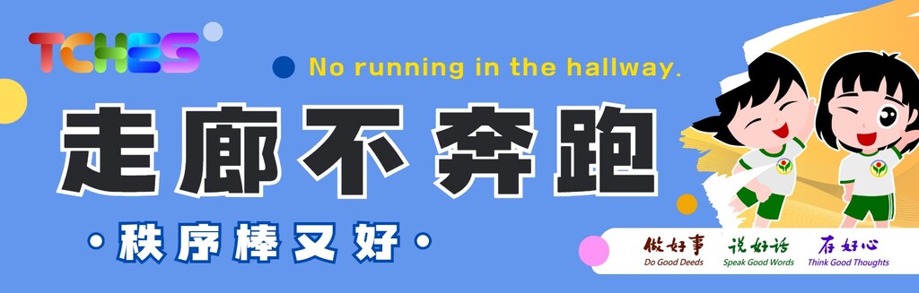 學校特別在學生人流最頻繁的每層樓走廊,張貼了全新設計的大型醒目標語「走廊不奔跑,秩序棒又好」。有別於傳統的制式警告,新標語風格活潑別緻,並結合三好校園,期望能更有效地吸引學生目光,時刻提醒「慢步慢行、安全第一」的重要性。