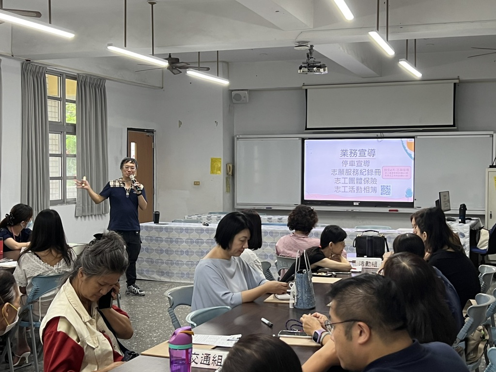 接著,由志工隊長與學校行政團隊說明新學期的服務項目與注意事項,包括圖書館管理、交通導護、校園安全巡視及活動支援等,並透過分組討論,讓志工們更清楚自己的服務分工。會中,許多志工也分享了過去服務的心得與小故事,彼此交流經驗,氣氛溫馨而熱絡。