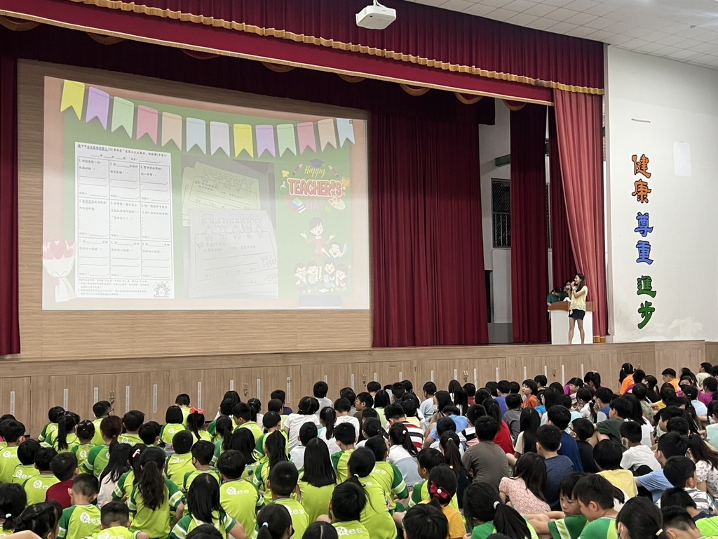 為了感念師恩及慶祝教師節,僑孝國小辦理一系列感恩慶祝活動,希望透過這些活動能夠塑造良好的校園文化及氛圍。 今年的系列活動是每位小朋友將校園想要感謝的老師寫在一張紙上,並寫出為什麼要感謝老師的原因,最特別的是今年有服務40年的黃正鴻老師接受表揚,黃正鴻老師表示:不論是現在擔任行政還是教學,甚至是其他工作者,每天都要讓自己充滿正能量,面對教育職場,讓自己時時健康喜悅,這樣才能因著我們的內在驅力,讓僑孝孩子更因此發光發熱。祝福大家教師節快樂!