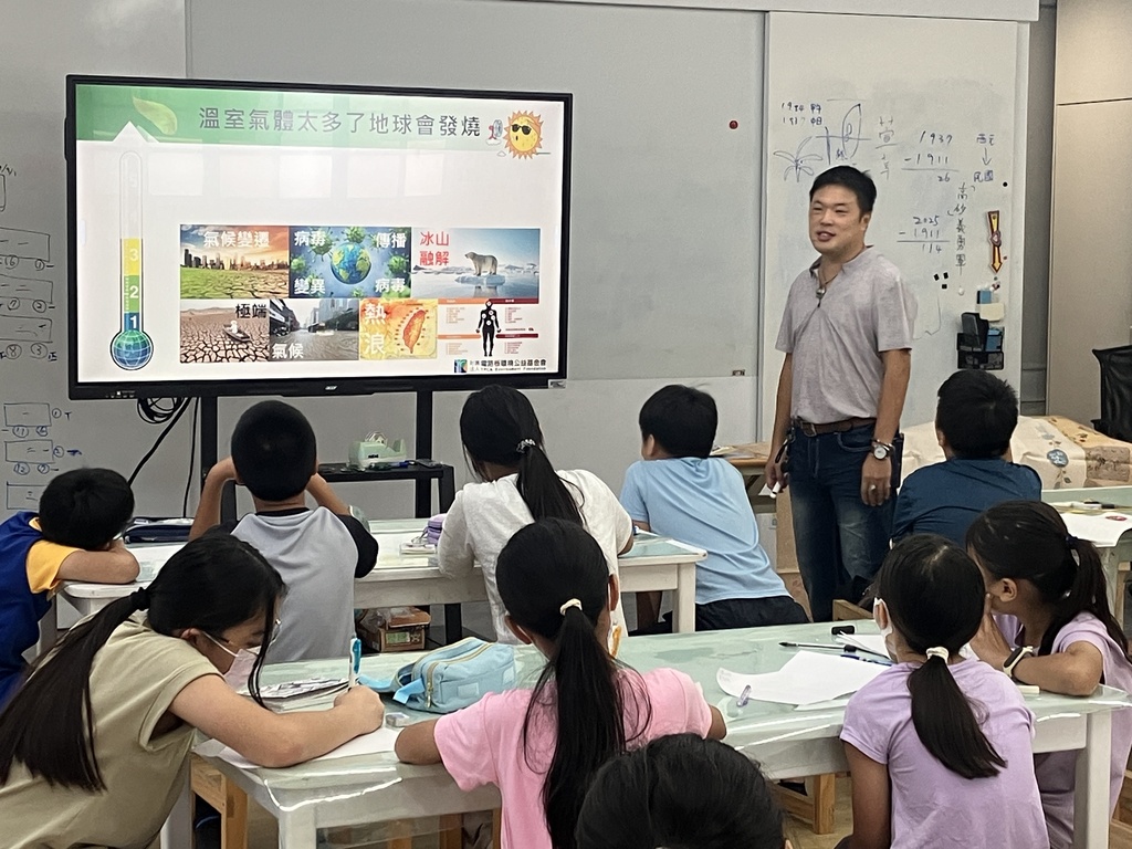 今天由財團法人電路板環境公益基金會的江孝昇老師,帶來一堂充滿驚喜與啟發的課程「食農好食力,玩出低碳生活新主張」。江老師以輕鬆幽默的方式,循序漸進地引領孩子們思考:從地球為何生病談起,讓大家明白SDGs(聯合國永續發展目標)的重要性,再進一步連結人類活動與極端氣候的密切關係。