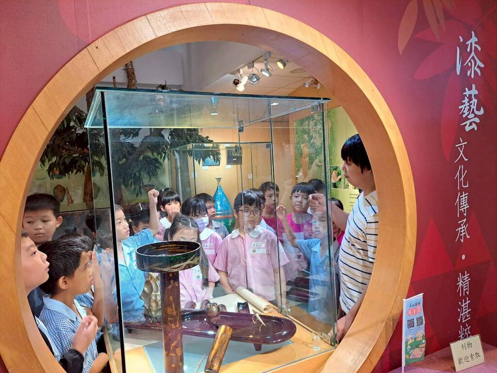 在體驗課程中,孩子們親手觸摸並觀察各式漆藝作品,感受漆藝光澤與質感的獨特魅力,並學習到製作過程中所需的耐心與細膩。這次參訪不僅提升了學生的美感素養,也讓他們對台灣傳統工藝文化有更深刻的認識。