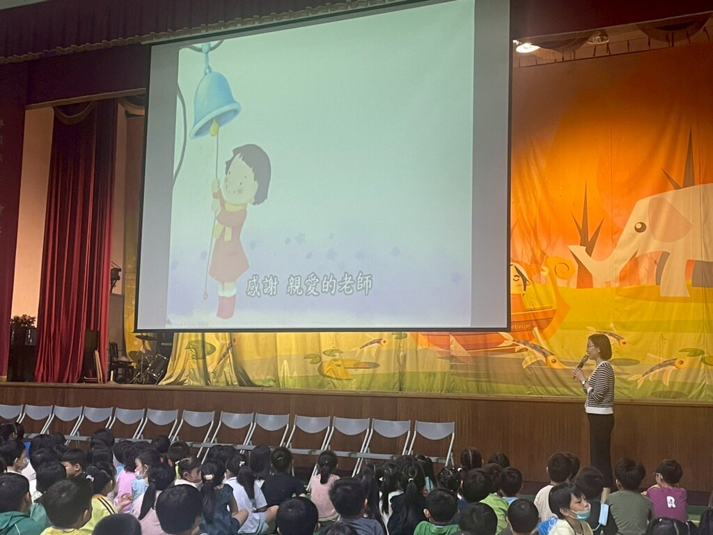 9月份規劃【教師節感恩花】活動,鼓勵學生透過實際行動對所有照顧自己的師長表達感謝,由老師們進行認證簽名。9月24日早上進行教師節慶祝活動,校長頒發資深優良教師獎狀,並由學生代表們向老師們獻上茶飲,感謝老師們辛苦的教導,敬師活動在全校合唱「感謝」歌曲的溫馨氣氛中圓滿結束。
