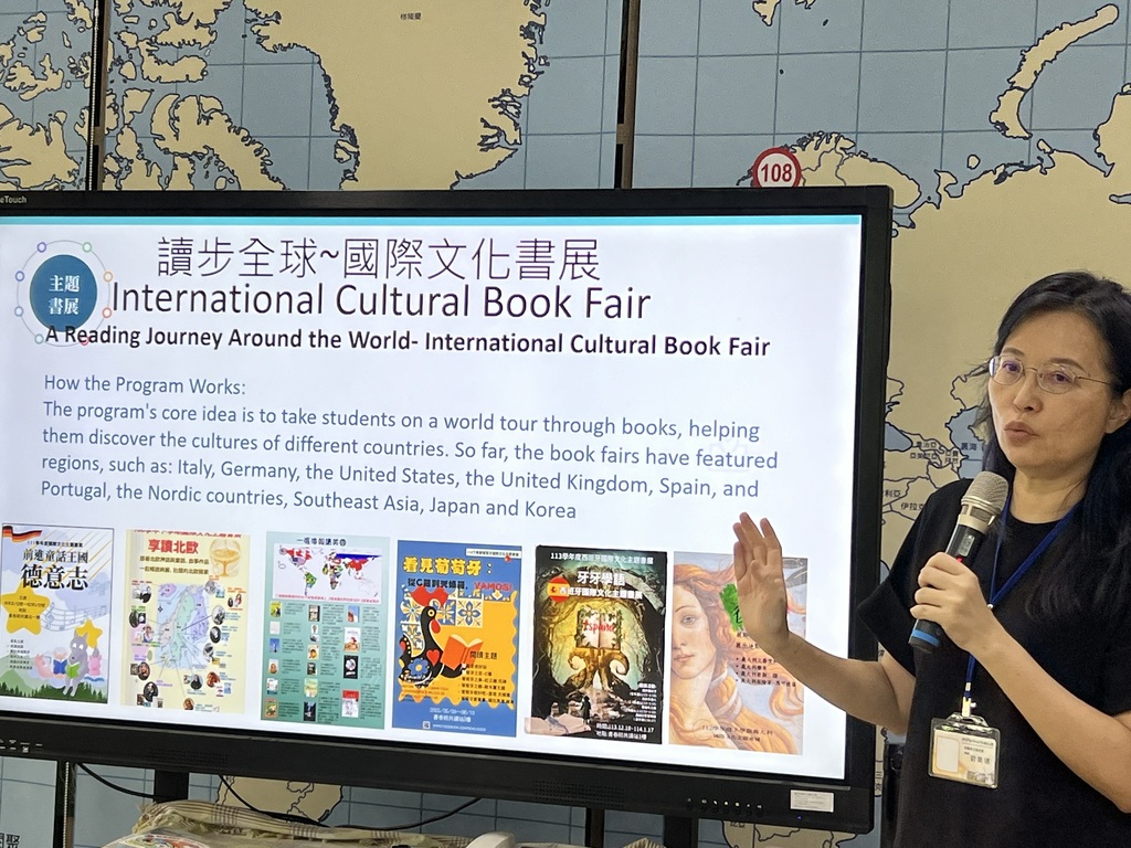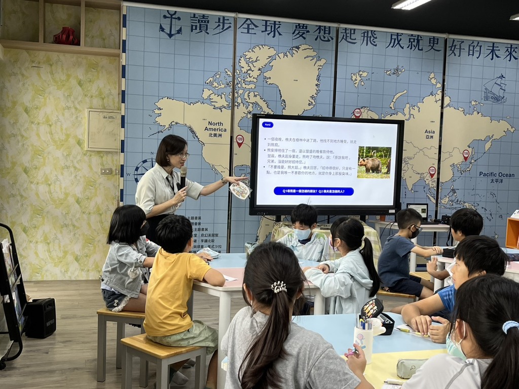 活動序曲,由教務處陳柳蓉主任介紹本校「共讀站」特色。共讀站不僅是學生課間與課後的閱讀天地,更是一個讓孩子自主探索、共享閱讀樂趣的空間。「共讀站」是本校閱讀推廣重點平台,提供多元館藏,培養孩子閱讀興趣,提供交流互動空間,鼓勵學生彼此分享心得,營造書香氛圍,透過閱讀推動教師劉美瑤老師的系統規畫,不定期結合校訂課程舉辦主題書展或閱讀活動,讓學生在不同議題中拓展視野,並將閱讀與生活經驗連結。