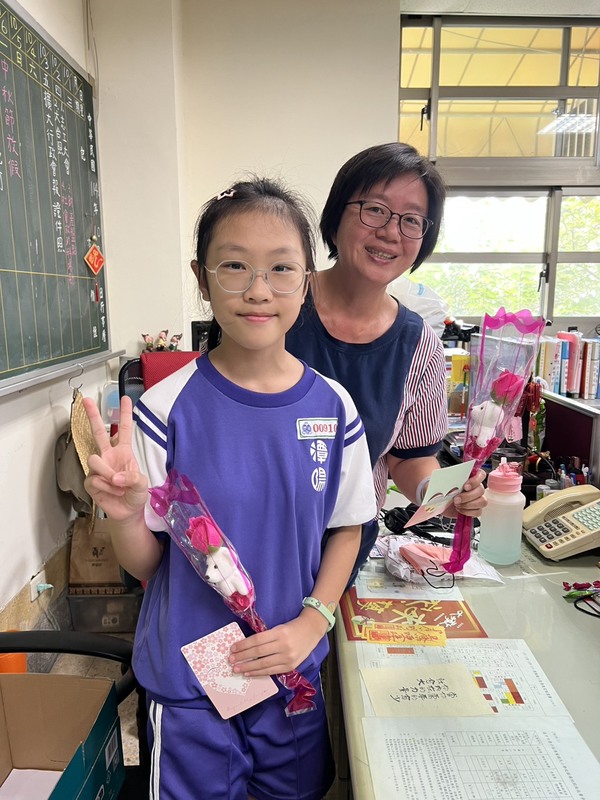 今天,校長室與行政處迎來了一群小小使者——來自班上的孩子們懷抱著親手繪製的卡片與手作花束,輕輕走進辦公室,靦腆卻認真地說出一句句「教師節快樂」,讓原本忙碌的空間,瞬間溫暖起來。