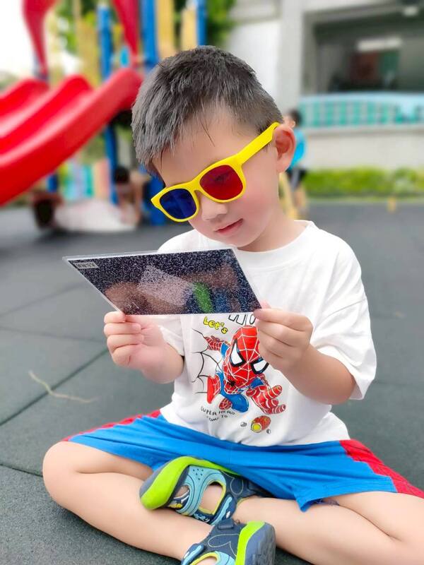 初次參與健康檢查的幼幼班孩子,面對陌生的檢查器材起初顯得有點緊張,但在老師的鼓勵下,孩子們一一鼓起勇氣站上去試試看呢!混齡班的孩子則還有參與視力檢查與立體圖測驗,過程中展現高度的專注力呢!