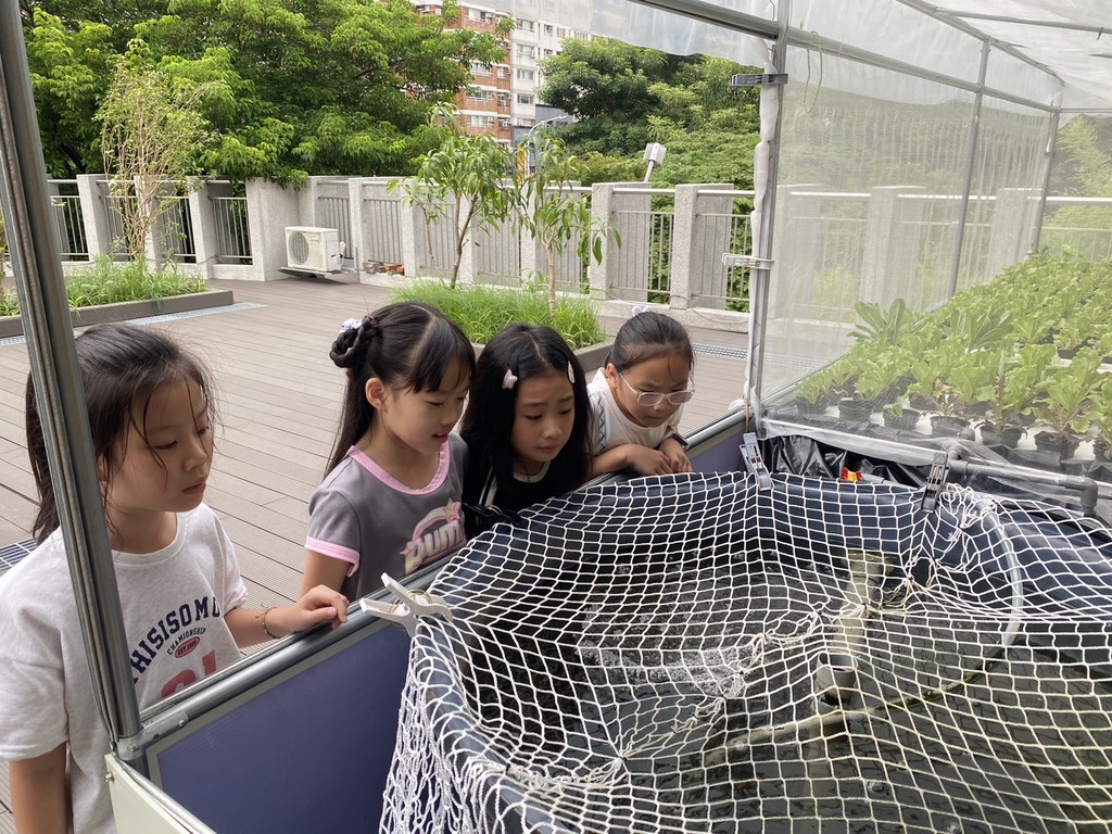 對自然生態頗有研究的張育誠老師表示,魚菜共生是一種低碳、永續又高效率的生態栽培方式,透過魚類排泄物轉化為植物的養分,再由植物淨化水質,形成魚與菜互相依存的循環。「學生們不是只在課本上看到抽象的生態循環,而是能實際觀察、測量與紀錄。這樣的學習更具體、更有感,也能引發孩子的探究精神。」