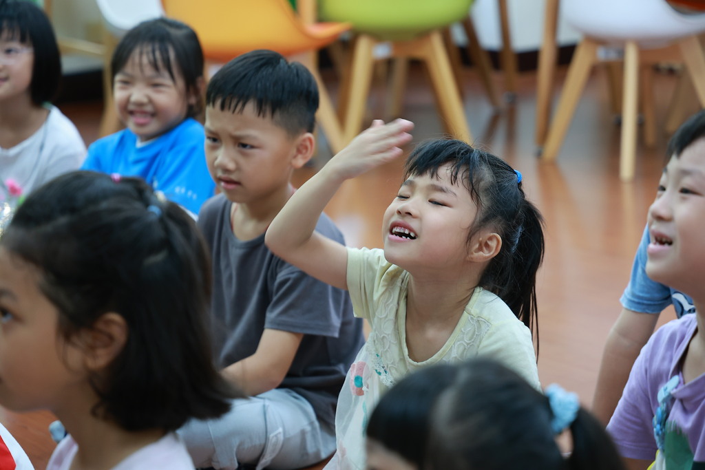 在說故事的過程中,校長不時拋出問題:「如果你是獅子會怎麼辦?」、「遇到困難時該怎麼解決?」隨著故事的轉折,孩子們熱情猜測小獅子的下一步,一甲雅娜小朋友說:「我喜歡這個故事,我要借這本書回家說給媽媽聽!」透過問答互動,孩子們不僅聽故事,也學會從故事角色的經歷中,思考自己面對挑戰的方法。當大家看到小獅子和好朋友一起開心的學認字和看書,閃亮亮的笑容灑滿整個圖書室。