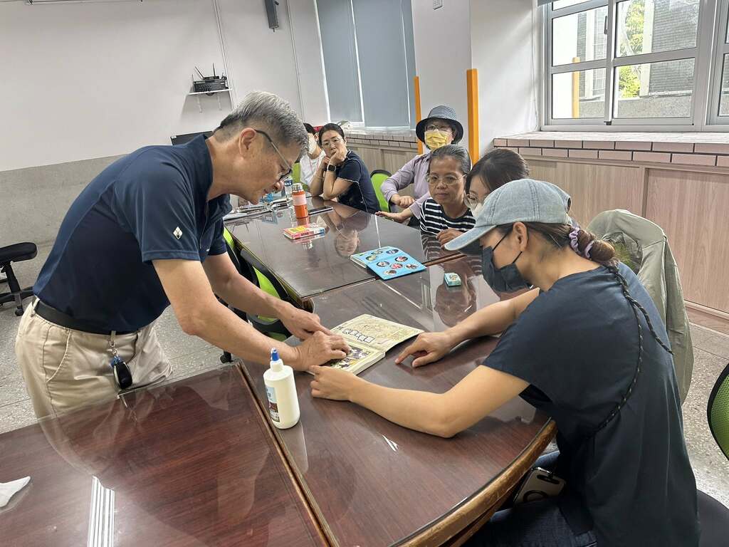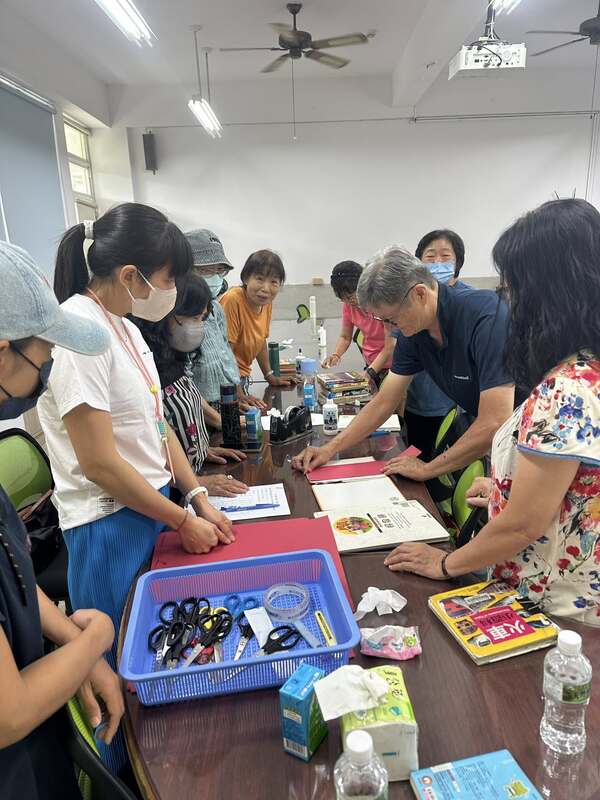 隨著時間的推移,書本經常因為翻閱頻繁而出現破損:書角折裂、書頁鬆脫、書皮破損……這些原本可能被淘汰的書,在志工們的巧手下,卻有了重生的機會。在老師的耐心指導下,志工夥伴們展開了一場「書本醫生」的訓練課程。他們學習如何修補書角裂痕、如何用黏著劑固定鬆動書頁,甚至學會使用護書膜幫書本換上一層新的外衣。每一個步驟都需要細心與耐心,從對齊書頁到壓平氣泡,每一個細節都是對書本的尊重。