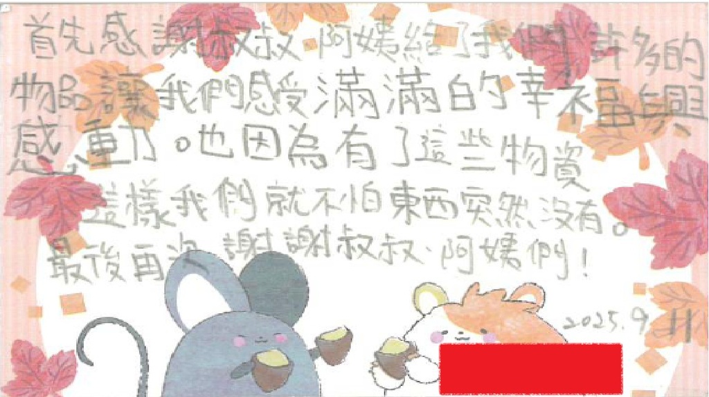 在最近的一次活動中,學校發放物資給有需要的家庭,但我們更希望這不只是一場單向的援助,而是一次教育的契機。我們邀請孩子們思考:「我是否也能做一件讓別人感到溫暖的事?」於是,有的孩子選擇寫一張溫馨的感謝卡,有的孩子選擇在下課時間美化校園,撿起落葉、擦拭公共區域;也有的孩子默默陪伴班上較安靜的同學,讓友誼的力量流動在彼此之間。感恩不必等到長大才能表達,也不必等到特定節日才能實踐。我們希望每一天都是孩子學習感恩的一天,每一件善舉都能在校園中發芽、生根。