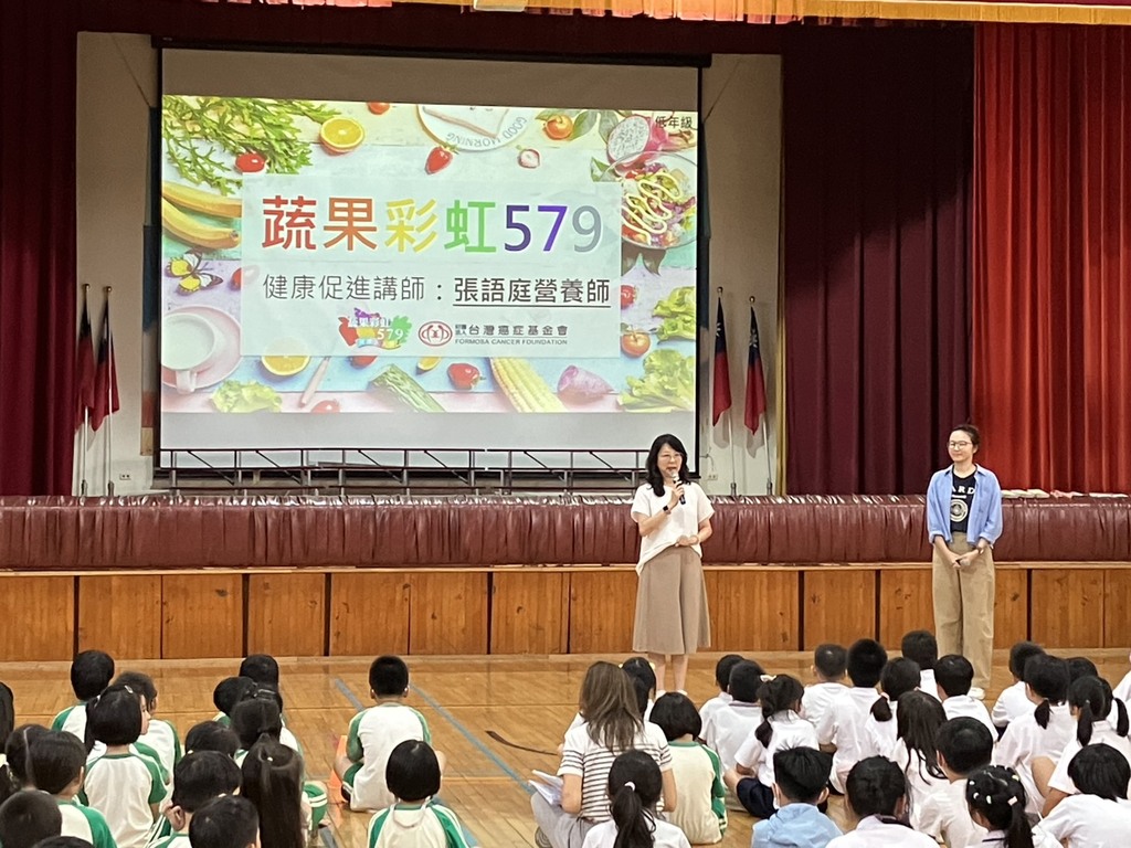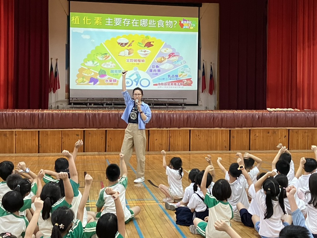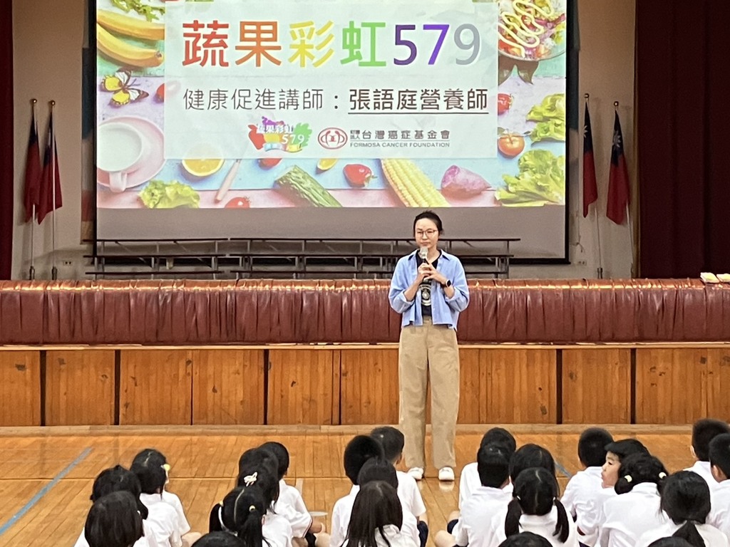 「各位小朋友,每天要吃3蔬2果總共是5份…」北屯國小照護健康狀況學生不遺餘力,今天邀請癌症基金會營養師,蒞校宣導「蔬果579」的飲食基本概念,希望大家吃得健康,身體強健!這次宣導活動,除了有獎徵答外更以健身唱跳做為結束,生動有趣,成效卓著!