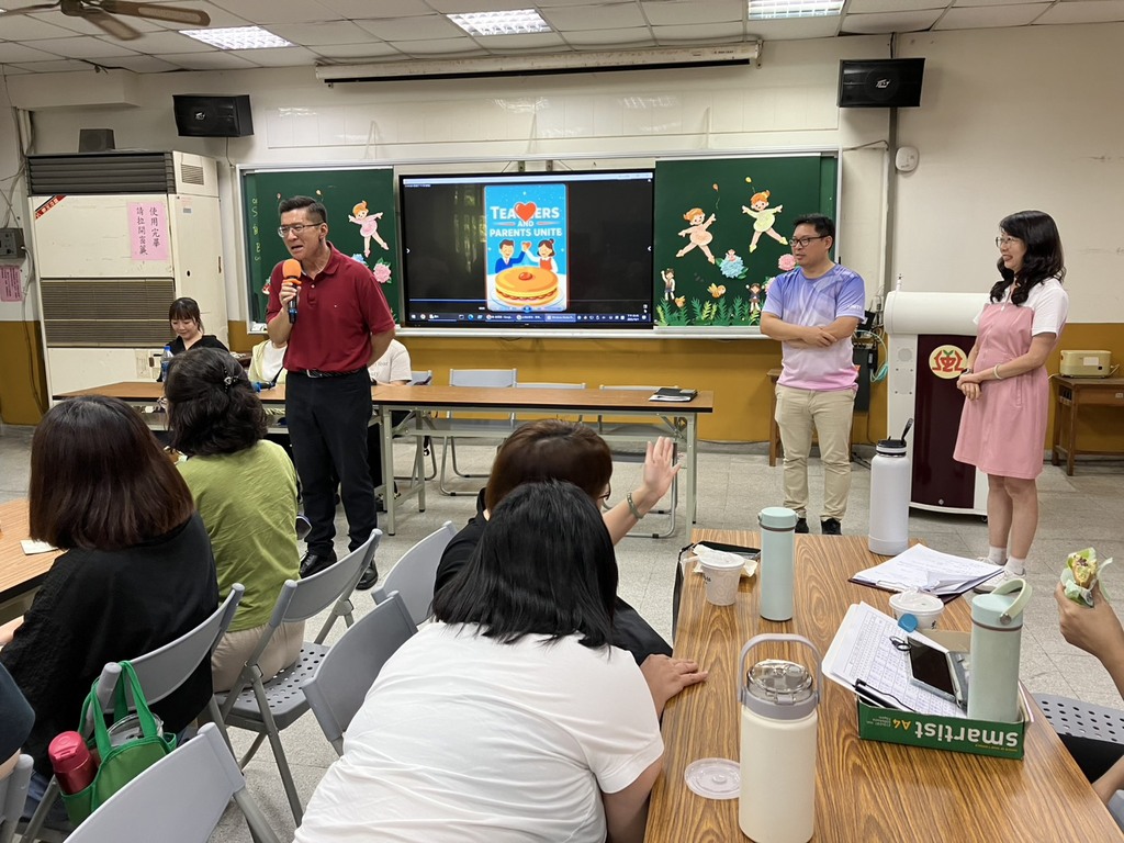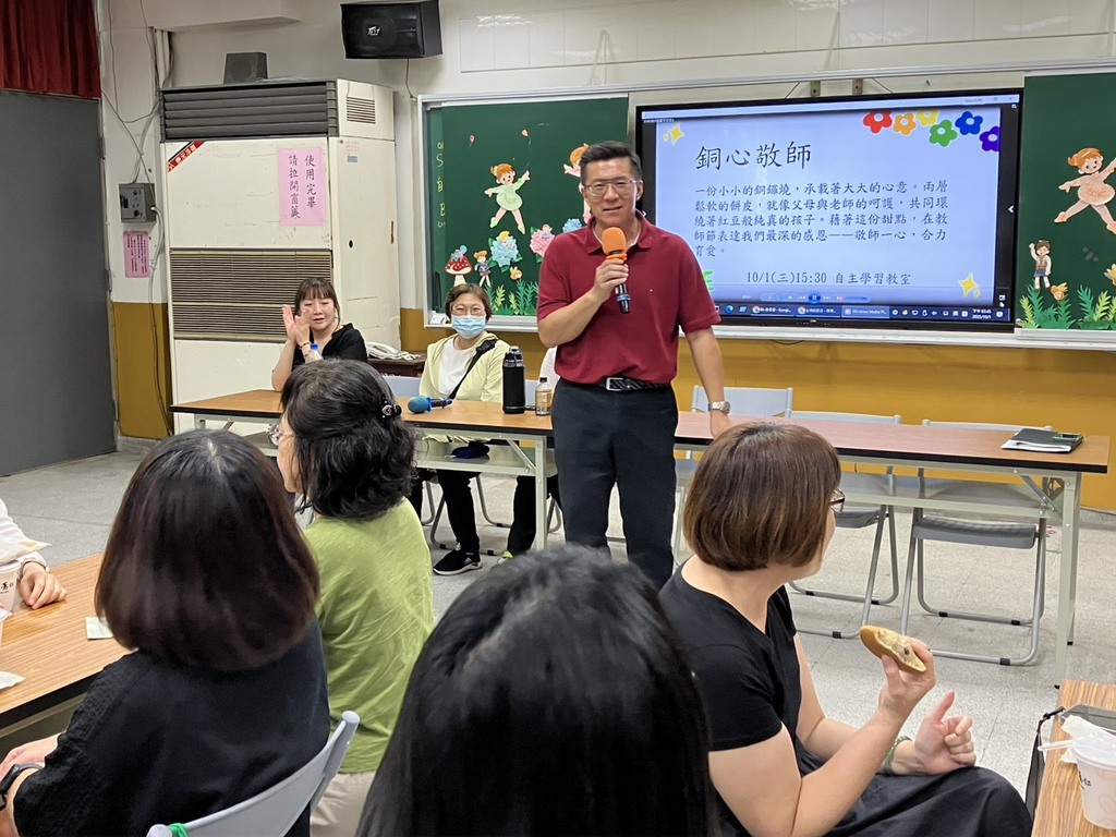 「銅心敬師會 重磅登場!家長會在此敬謝老師,長久以來對孩子們全方位的照顧。老師與家長就像銅鑼燒的兩片餅,同心協力一起把孩子包住照護好…」北屯國小家長會在教師節及中秋節前夕,準備星野銅鑼燒及紅豆薏仁湯,辦理謝師茶會,會長代表所有的家長感謝老師對孩子們的奉獻與照護,北屯國小家長一級棒,北屯國小教職員工超級優!