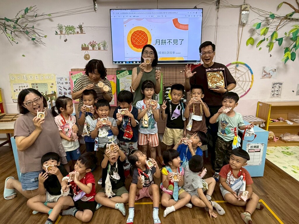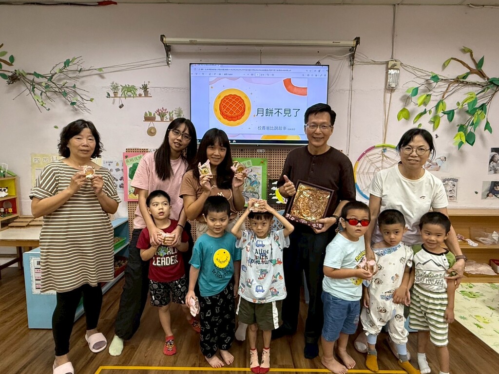 活動最後,三個班級的孩子們依序與親切的「校長爸比」合影留念,定格這一段溫馨的中秋故事時光,也為這場「文化 × 團圓 × 學習」的節慶活動,留下一抹圓滿的笑容。