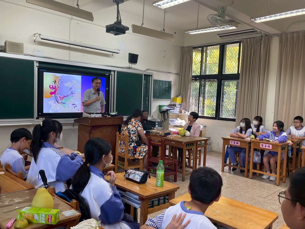🥮 巧吟校長親自帶來月餅與柚子,和大家邊品嚐、邊說節日故事。
