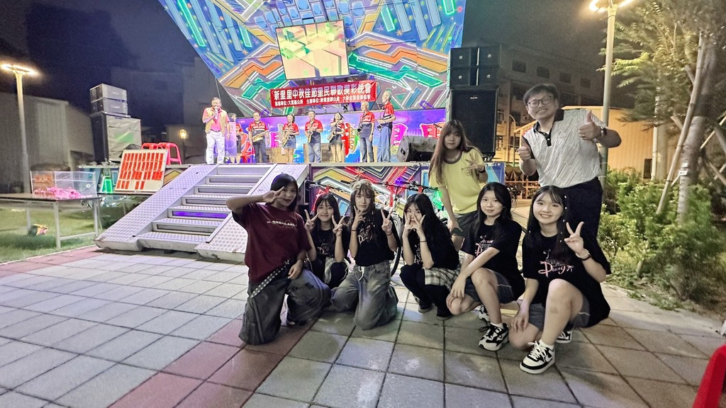 新里里由熱音社與熱舞社擔綱親善大使,帶來熱鬧表演。夏田里則由流行音樂社演唱許多大家耳熟能詳的歌曲,增添佳節暖意。仲凱校長與怡萱主任則陪伴兩天三社團的演出,與社區居民同歡,校長也擔任抽獎嘉賓,希望為照顧學校發展的社區民眾帶來連連好運。
