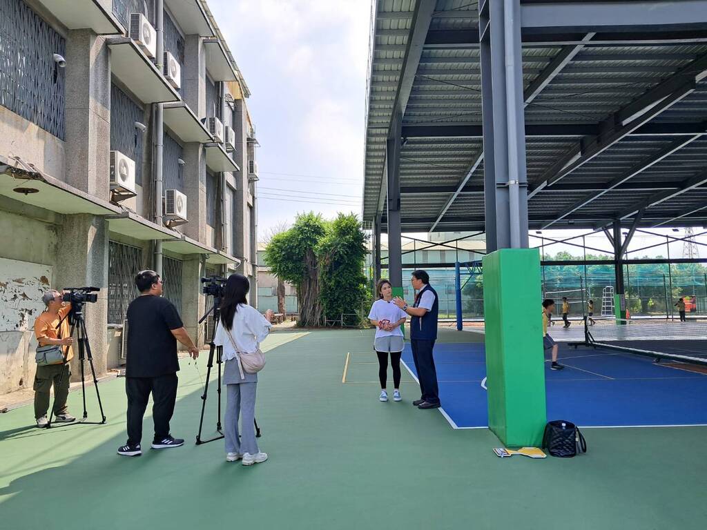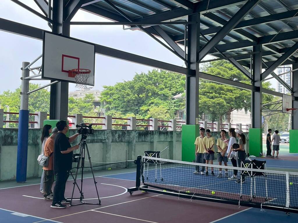 初開學的一天,群健電視到校製作體育節目,在本校拍攝的主題是匹克球運動。匹克球社十位同學由謝采樺教練帶領,一齊示範動作並與主持人互動,校長也為節目說明學校推動匹克球運動的過程。 同學第一次體驗節目拍攝,感到十分新鮮有趣,每個人都想很認真參與,也期待節目播出的那天。