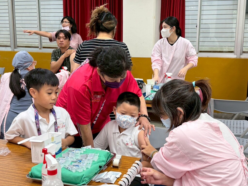 「小朋友最勇敢 疫苗接種不害怕…」114年度公費流感疫苗已於10月1日分2階段開打,第1階段自10月1日起,接種對象包括65歲以上長者、滿6個月以上至國小入學前幼兒等。北屯國小師生今天疫苗接種,感謝醫療院所、衛生所醫護人員及本校愛心志工全力支援疫苗接種工作。