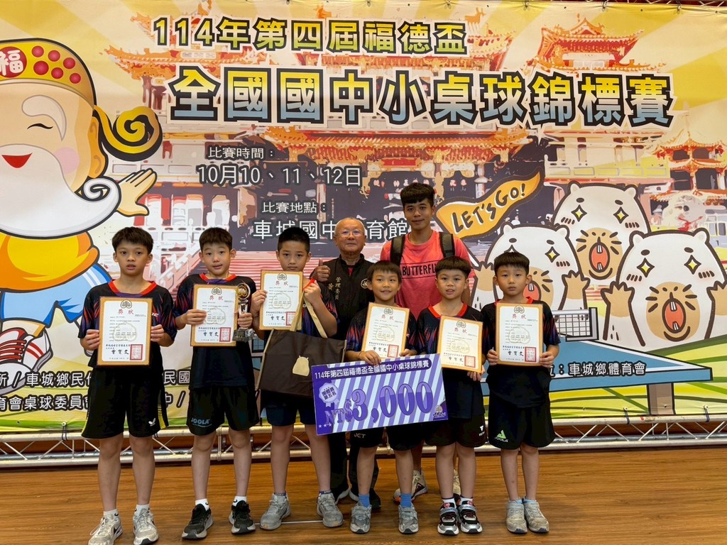 這場全國性賽事競爭激烈,來自各地的菁英隊伍齊聚一堂。西屯國小桌球小將們在廖昱程教練的悉心指導下,展現出堅定的意志與團隊精神。他們以穩健的基本功、靈活的戰術與不放棄的鬥志,一路過關斬將,最終以高年級男子組第五名的亮眼成績,為學校爭光。