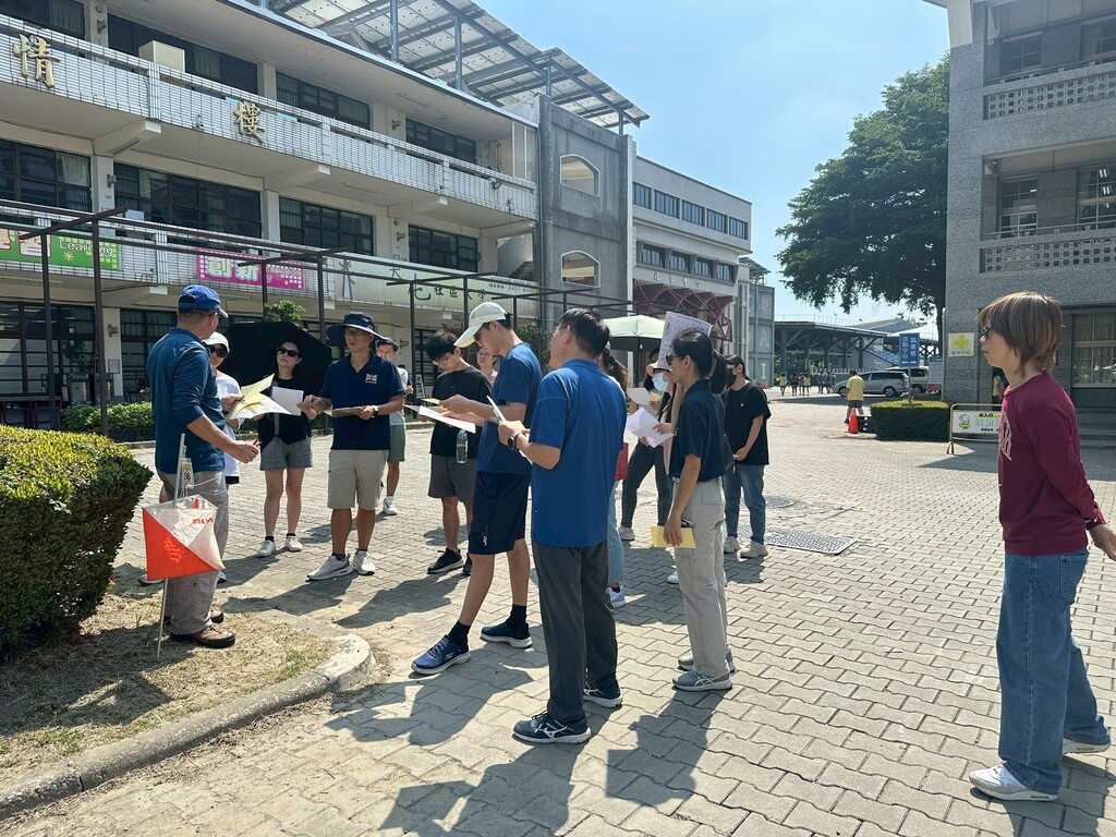 氣溫攝氏33度豔陽下,不減大家學習的心,由本校社會科吳靜茹老師邀請鄭僥龍教練,為大家解說定向越野運動並實際操作。