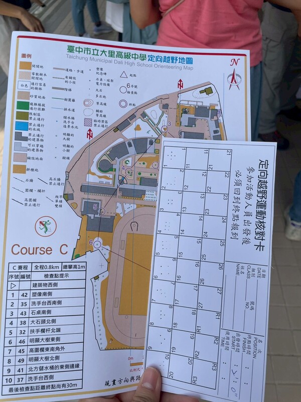 鄭僥龍教練說,這項運動發源自北歐,他曾在瑞典的競賽中,因為錯過一個檢查點而多花兩個小時,足見在陌生荒野中,判斷力與冷靜思考以及耐力都是備受考驗。大里高中雖大,但在熟悉的場域中,大家都飛快完成教練佈的檢查點,大家都有很好的方向感跟好體力,有老師回饋完成活動後馬上達到5000步目標。