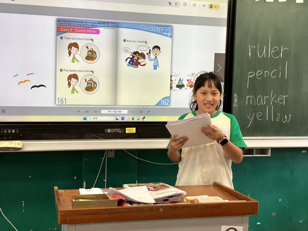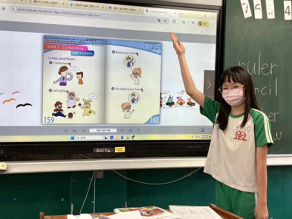 「raise your hand!」英語的日常用語融入學生生活中。本校辦理學習扶助活動成效卓著,從二年級開始紮根,辦理國語、數學與英文等領域,學生在老師的指導下,有長足之進步。教育部「學習扶助」計畫推動至今已10餘年,不僅重視課後學習,也融入「課中學習扶助」機制,幫助需要學習協助的國中小學生提升國語文、英語文、數學等基本學力,廣獲學生家長支持。學校與教師投入學習扶助,一起讓學生學習持續進步。