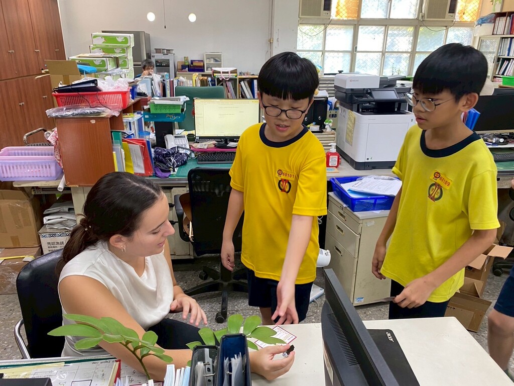 第二節大下課時,教務處走廊排起長長人龍,三到六年級學生們帶著成語小卡迫不及待要來闖關,勇敢開口把成語念給外師聽。忠孝學生開心學英語,與外師Grace面對面互動超興奮!Grace熱情稱讚孩子們的表現,現場洋溢歡笑與成就感!忠孝國小提供孩子多元雙語學習平台,讓英語成為生活的一部分,也讓學生一步步接軌國際教育。