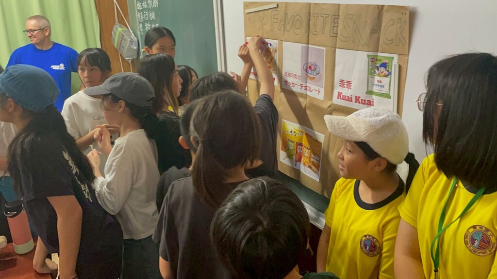 最後,Kira、Alice、Ford 以「台中日本味」為主題開場,讓同學猜哪張照片是台中、哪張是日本,並透過拼圖遊戲介紹城市地標。Jennifer、Gracia、Dora 則與明星學園四年級學生一起探索台灣零食,邊吃邊投票選出最受歡迎的口味。