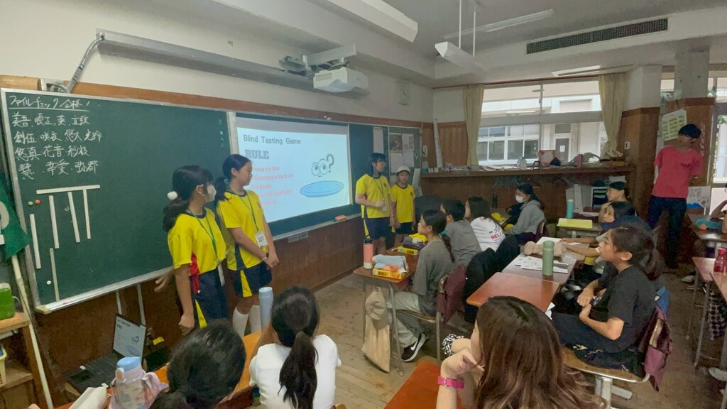 在6年1班,Sandy、Mary、Mandy、Yisin 以「台灣點心」為主題,介紹乖乖、足球巧克力等台灣零食,並與日本同學一起試吃、交流口味;Lennard、Ryan、Andy、Nicole 在602教室進行「My School」簡報,介紹東海國小的校園與吉祥物石虎,讓日本同學直呼「かわいい!」