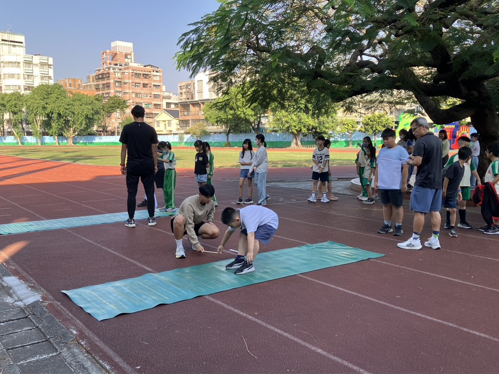 北屯國小師生迎接114學年度運動會,大家動起來!今天登場的是中年級學生立定跳遠比賽,立定跳遠要求運動員不使用助跑,而是從立定姿勢開始的起跳,跳躍途中只准離地一次,否則視為犯規。我們一起來看看,誰有一雙彈簧挑!加油!